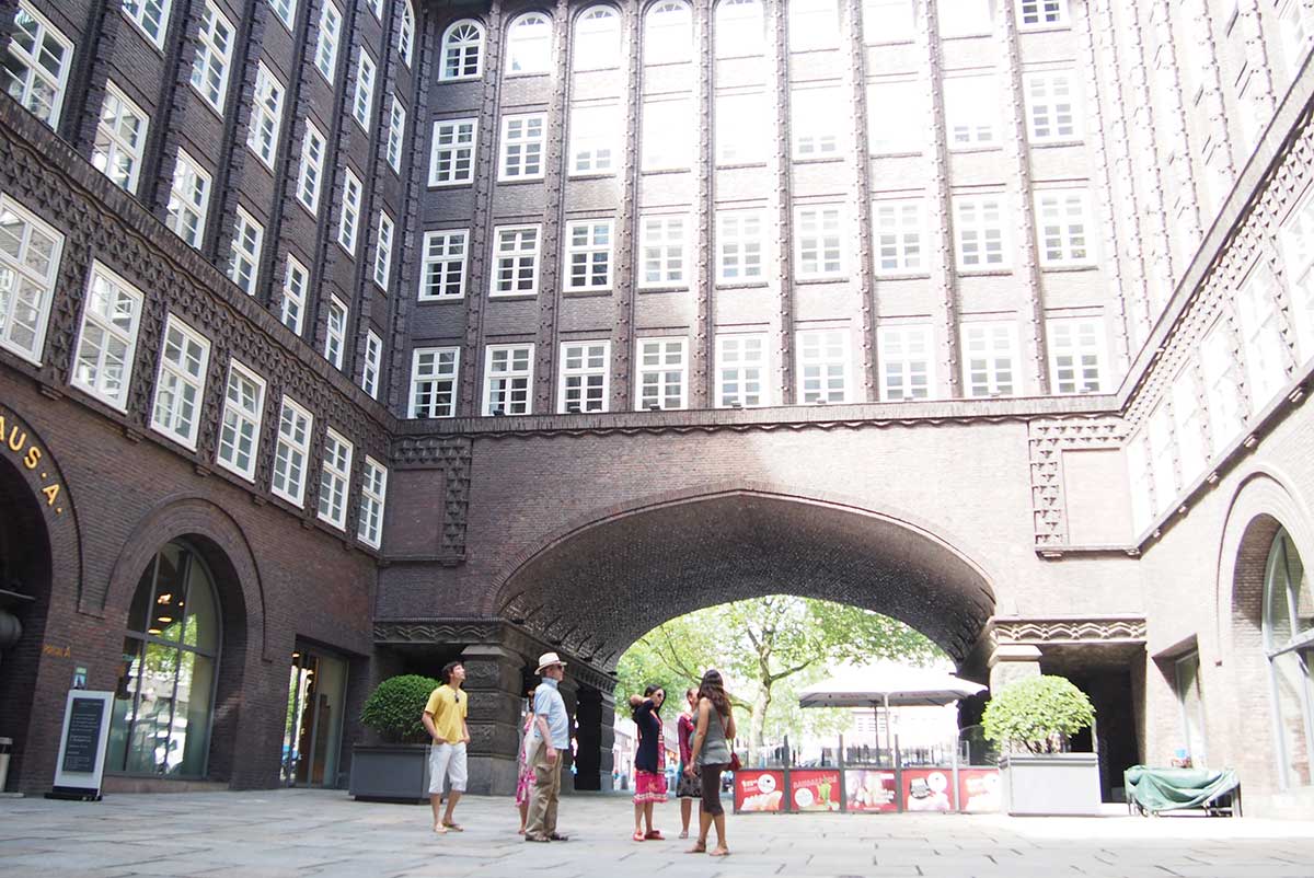 Nous nous dirigeons vers le port par la rue Alstertor, en passant par le Thalys. Théâtre Thaliala Gerhardt-Hauptmannplatz, la Mönckebergstraße et le quartier de le quartier des immeubles de bureaux où nous rencontrons l’imposant bâtiment de la Chilehaus. Achevée au début du 20ème siècle, elle présente la prospérité que les commerçants hambourgeois ont pu acquérir grâce au commerce outre-mer. Un peu plus au sud se trouve le Messberghof, autrefois appelé Ballinhaus. En raison des origines juives d’Albert Ballin, la maison fut rebaptisée Meßberghof sous le régime national-socialiste.